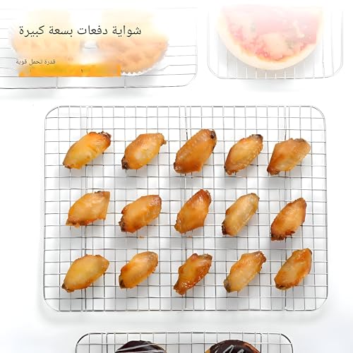 - With its size of 38 × 25 cm, it fits most ovens and trays, making it perfect for diverse tasks such as cooling baked goods, roasting meat or vegetables, grilling seafood, drying fruits, or even protecting countertops from hot cookware.