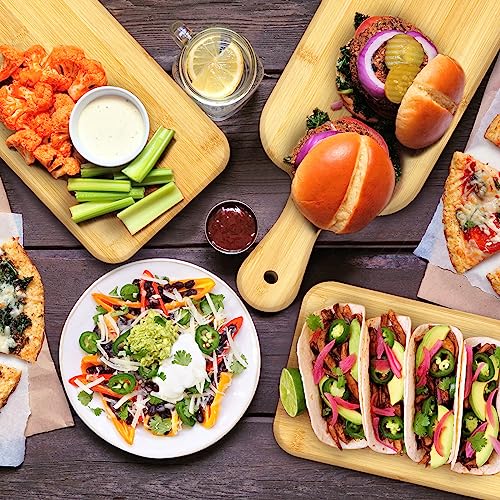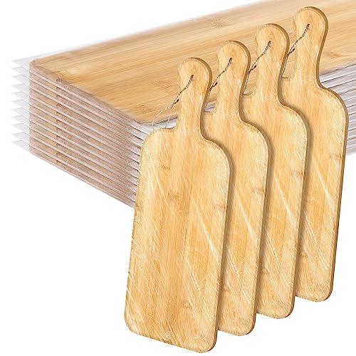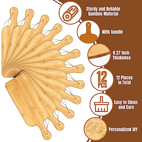 Patelai - Patelai 12 Packs Cutting Board Set Plain Chopping Board with Handles Large Serving Board Wooden Kitchen Cutting Board Bulk for Vegetables Meat Pizza Cheese Fruit Bread (16 x 5 Inch, Bamboo)