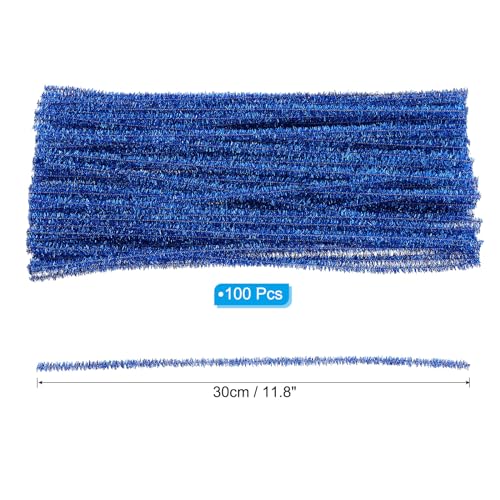 PATIKIL - منظف أنابيب 30 سم/11.8 بوصة من باتيكيل، 100 قطعة من العصي الزغبية اللامعة لتنظيف الأنابيب ومستلزمات الحرف اليدوية لمشاريع الديكور الإبداعية والفنية، أزرق