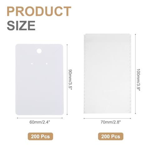 PATIKIL - PATIKIL Earring Display Cards 200 Pcs Necklace Holder Cards with 200 Pcs Jewelry Packaging for Earring Necklace Jewelry Craft Display Packaging Supplies (White, 3.5 x 2.4 Inches)