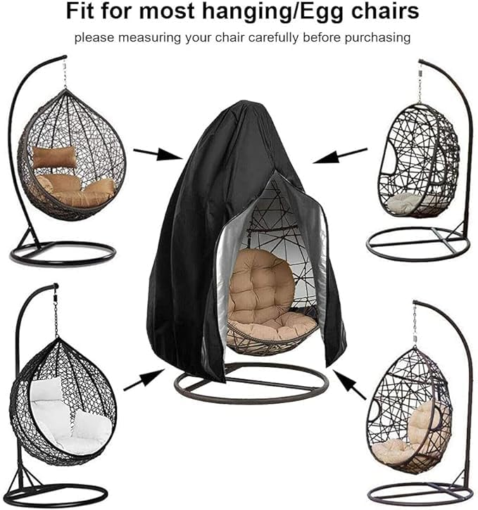 - EGG CHAIR COVER SIZE --- Suitable for most patio hanging chairs, swing egg chair or pod chair and stand up to 75" H-45" D. (Note !!! : please confirm your hanging chair size information before purchasing).