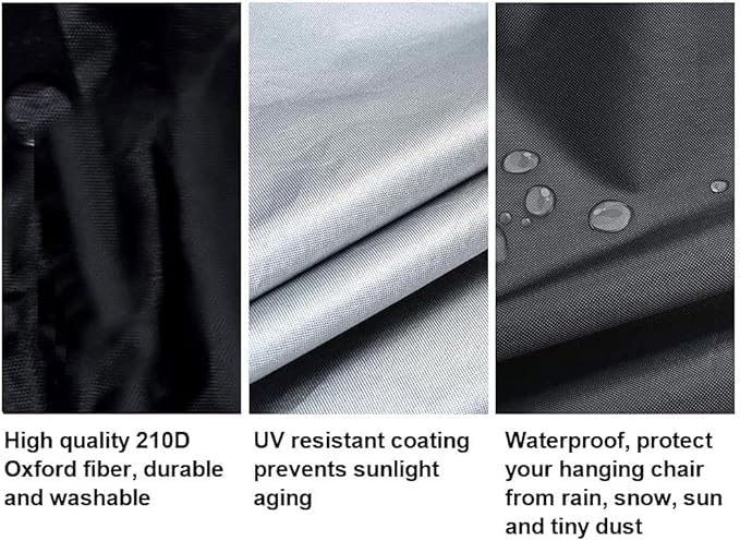 - LIGHTWEIGHT MATERIAL --- Made of 210D oxford fabric with PVC coating. Protect your chair against damage caused from wind, rain, frost, dirt, dust, bird droppings, leaves, etc. Keep your hanging chair clean and last the lifetime of your hanging chair.