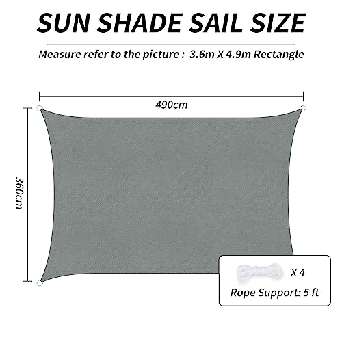 PATIO PLUS - مظلة شمسية شراعية بتصميم مستطيل من باتيو بلس، مصنوعة من قماش اوكسفورد 300D للحماية من الأشعة فوق البنفسجية، مظلة للفناء الخارجي والحديقة وحمام السباحة والفناء الخلفي، لون رمادي، مقاس 3.6 × 4.9 م