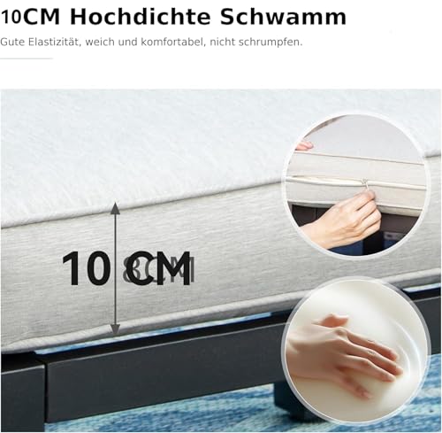 - Comfort upgrade: each cushion is equipped with a 10 cm inch high density sponge that ensures superior comfort and quick rebound. The cushions are firmly attached to the frame, but can also be easily removed for cleaning or when not in use.