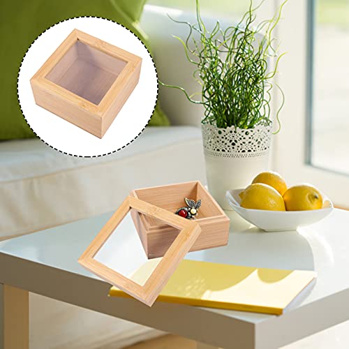 PATKAW - علبة عرض مجوهرات خشبية بتصميم علوي من الزجاج، صينية مجوهرات خشبية مربعة للتذكارات مع غطاء للهدايا والمجوهرات، صندوق منظم ديكور للمنزل من باتكاو