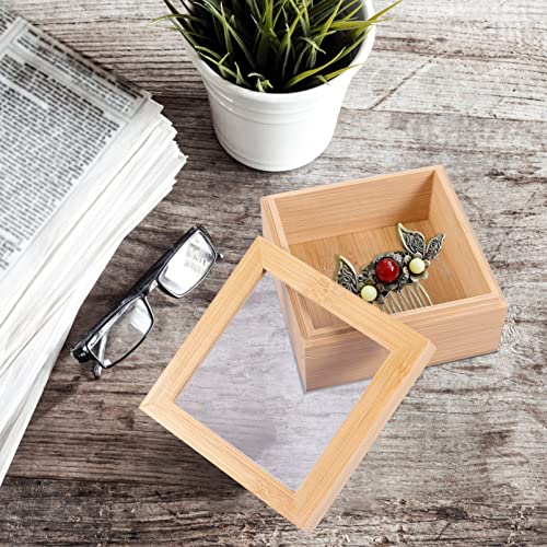 - علبة تخزين مجوهرات من الخشب وغطاء علوي زجاجي لعرض المجوهرات، علبة هدايا مجوهرات من الخشب الطبيعي، علبة هدايا مربعة مع غطاء، صناديق تنظيم مجوهرات زخرفية عتيقة.