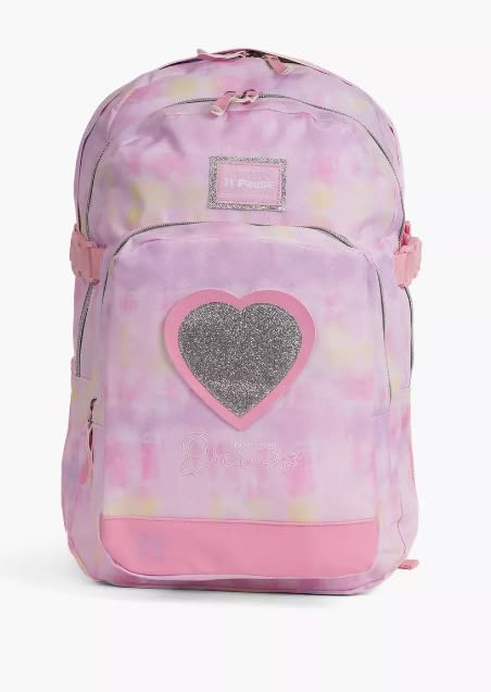 Pause - Pause School Bag Pink Tie-Dye Rose Glitter And Hearts 19 INCH Backpack with Pencil Case For Girls