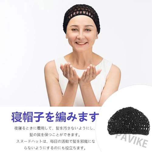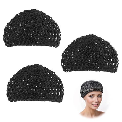 PAVIKE - PAVIKE Hair Net Night Hair Cap Hair Net Hair Cap Set of 3 Black Crochet Knit Sleeping Hair Net Fitted Hair Cover Wrap Comfortable Hair Care Wave Cap for Women Curl Keep Ballet Organize Shower Bath