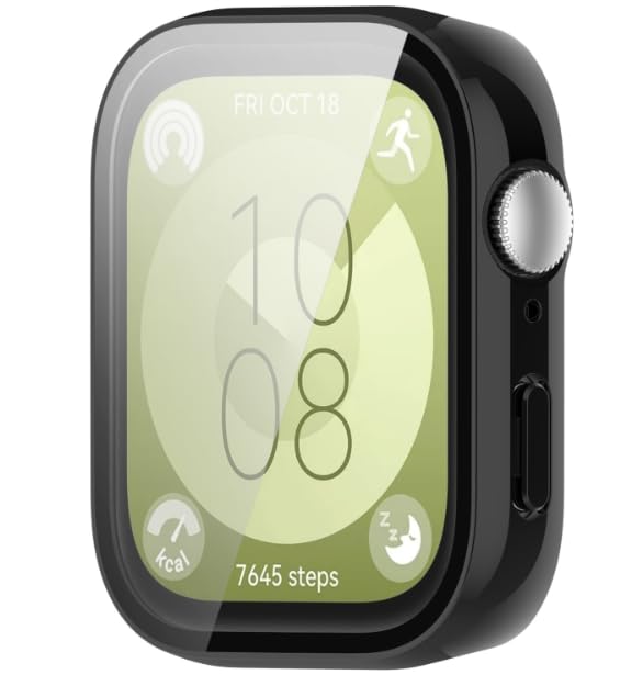 Generic - PC Frame Cover with Tempered Glass Screen Film For Huawei Watch Fit 3 - Black
