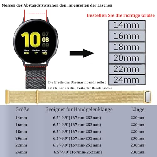 PDSQL - Stainless Steel Mesh Watch Strap, Metal Replacement Bracelet Stainless Steel Strap with Magnetic Closure, Smartwatch Quick Release Watch Replacement Strap for Men and Women