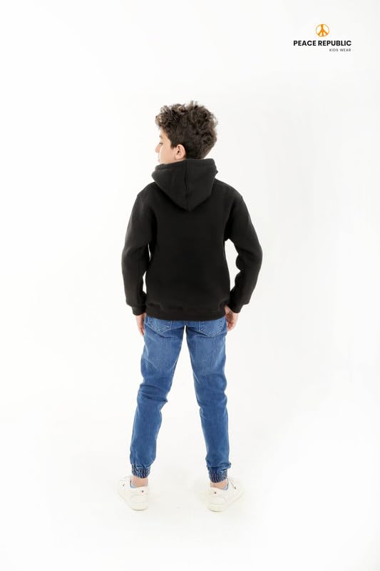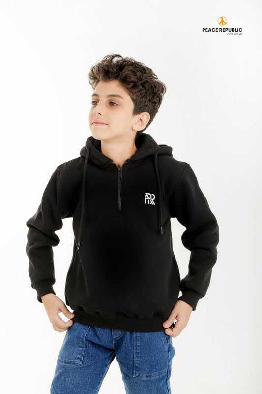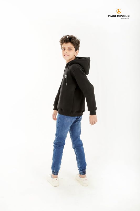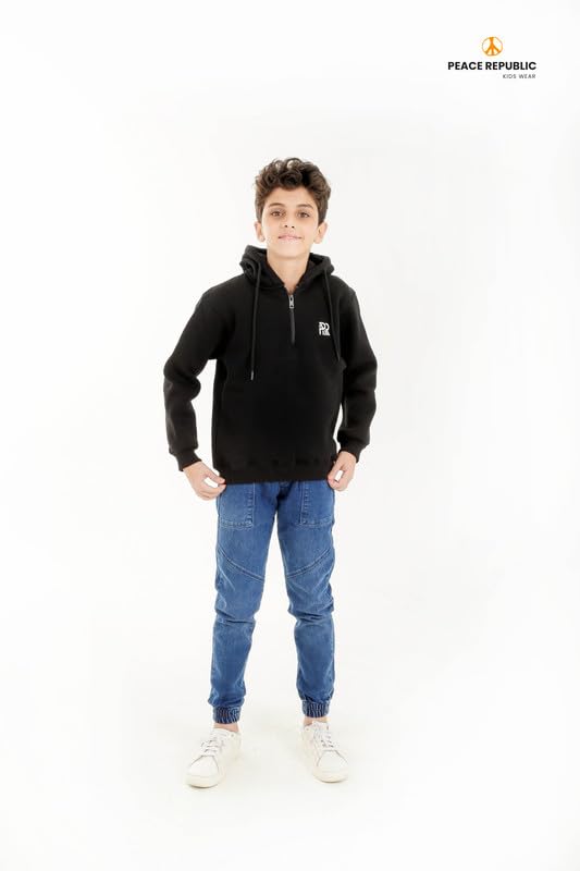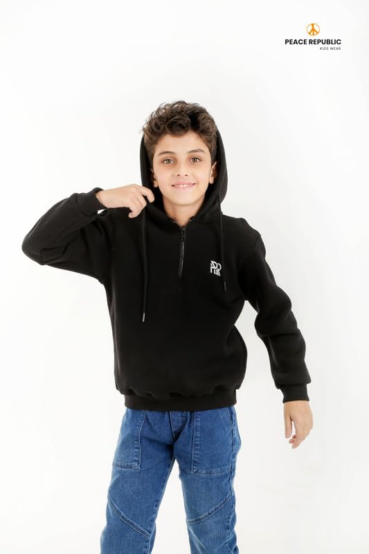 Peace Republic - سويت شيرت بغطاء للرأس ونصف سحاب للاولاد من بيس ريبابليك مع تطريز على الصدر kss405black