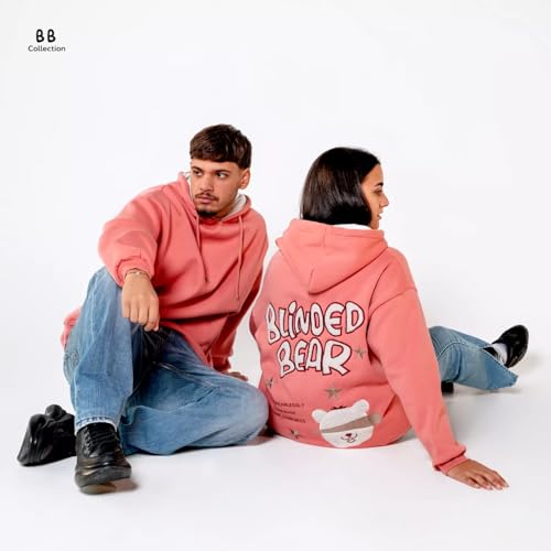 Generic - Peaco - BB COLLECTION Unisex Hoodie, Pink, S-M/L-XL, Cotton Fleece, Oversized Fit, Embroidered Back Design with Fur, Blinded Bear Logo