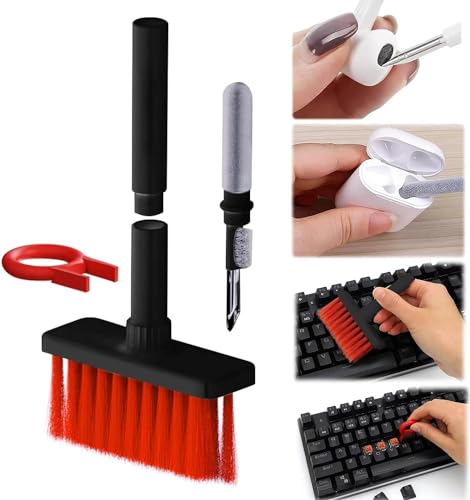 PEAKTREND - 5 in 1 Keyboard Cleaning Brush Kit,Multifunctional Earbuds Cleaner with Keycap Puller,Cleaning Tools for Mechanical Keyboard,PC Laptop and Earphone (Red)