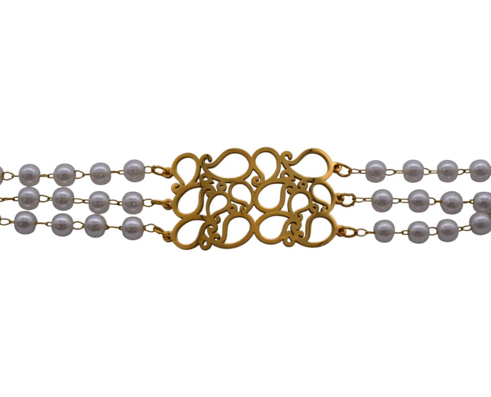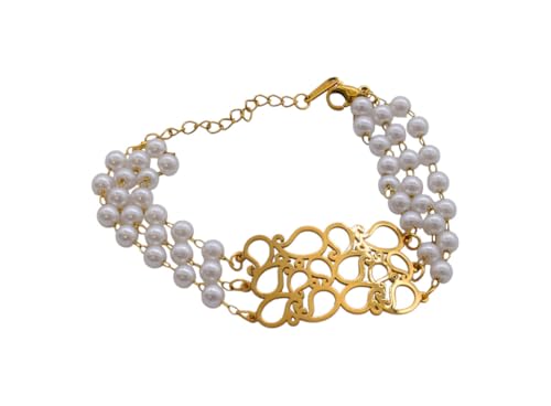 Generic - سوار ستانلس ستيل بتصميم لؤلؤي للنساء - ذهبي