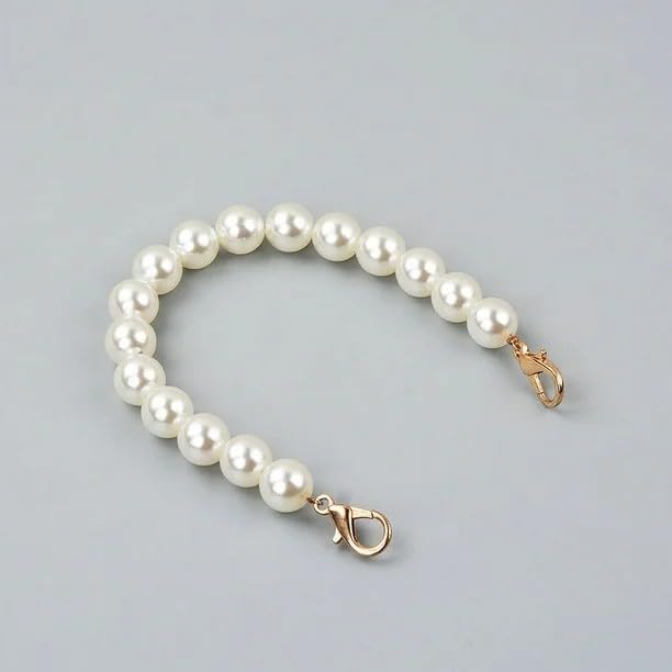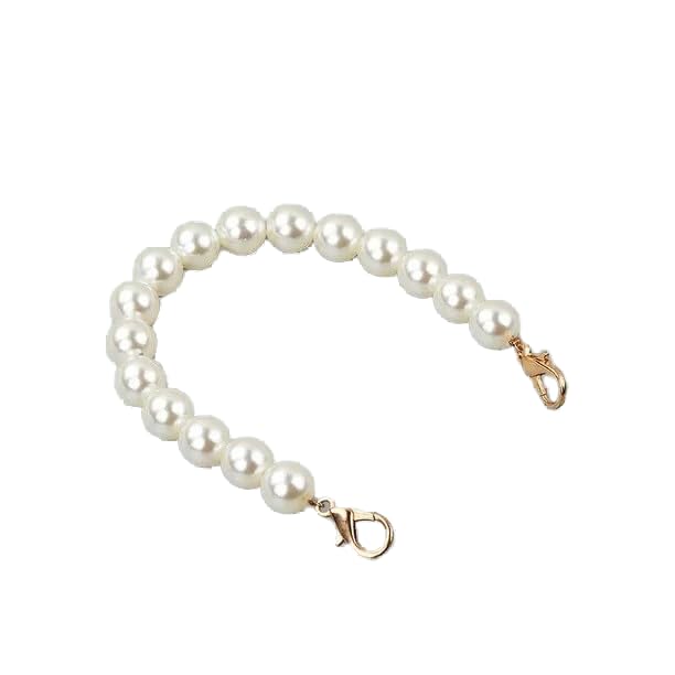 Generic - سوار بدلاية موبايل من اللؤلؤ، سوار معصم مطرز يدويا باللون الابيض مع مشابك ذهبية