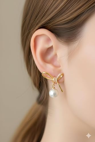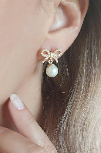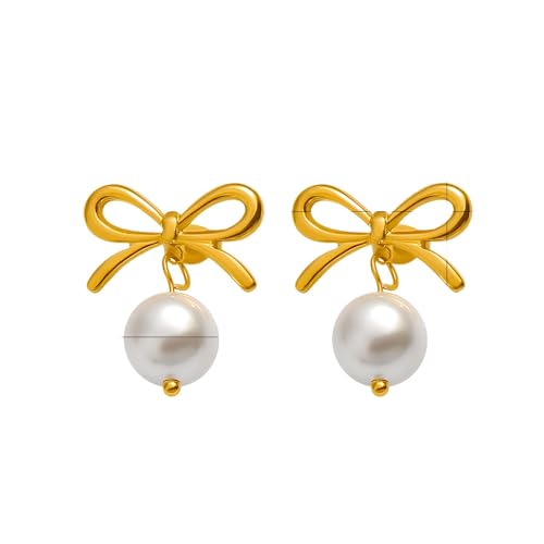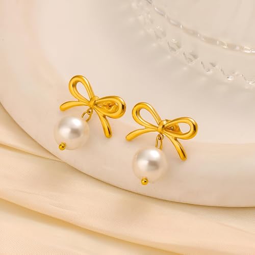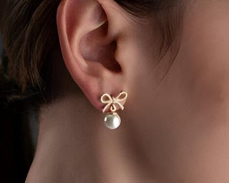 Generic - Pearl Stud Earrings - Delicate gold-plated bow design with miniature pearls, offering refined beauty for any outfit or occasion.