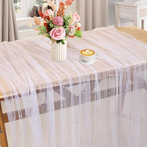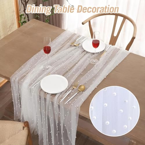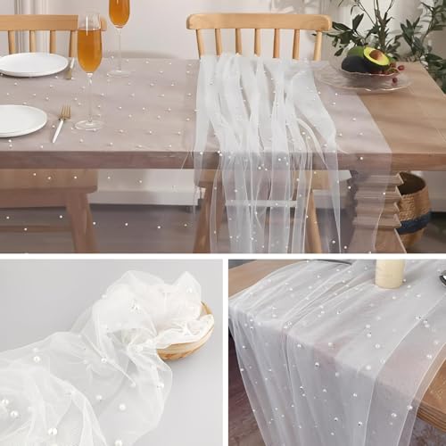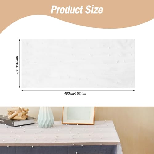 Cisyia - مفرش طاولة ابيض لؤلؤي، مقاس 80 × 400 سم من الشاش بتصميم دانتيل انيق، ديكور طاولة الزفاف، ديكورات طاولة الحفلات لحفلات ما قبل الزفاف وحفلات اعياد الميلاد واحتفالات الذكرى السنوية