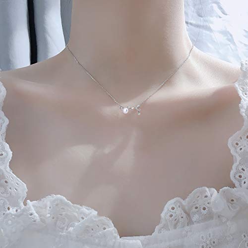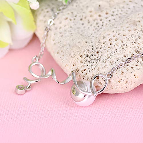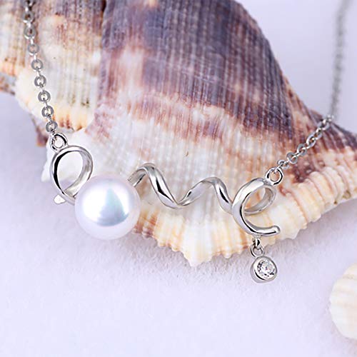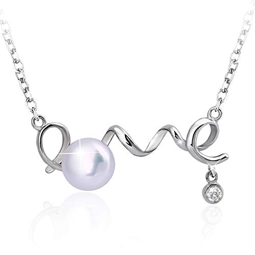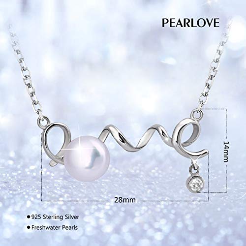 PEARLOVE - سلسلة من فضة ستيرلينج 925 بدلاية «LOVE» لؤلؤ مياه عذبة ابيض للنساء والفتيات مجوهرات انيقة مع صندوق هدايا بيرلوف المياه العذبة