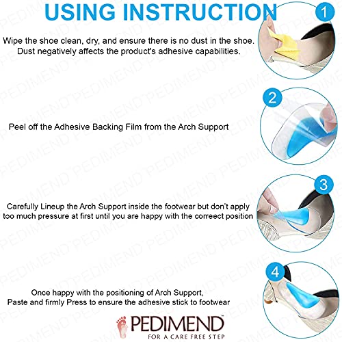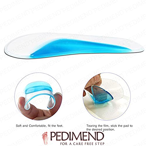 PEDIMEND - PEDIMEND Durable Silicone Gel Arch Support Foot Insoles - Plantar Fasciitis Relief Cushions – Flat Foot Support – Adhesive Arch Pad for Relieve Pressure and Feet Pain - Unisex - Foot Care (1 - Pair)