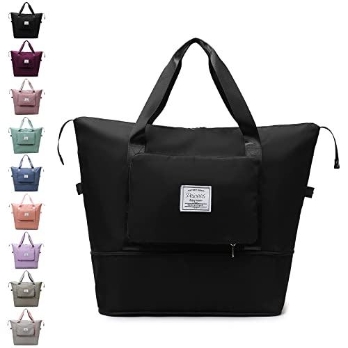 Peicees - شنطة دفل لاجازة نهاية الاسبوع كبيرة السعة وقابلة للطي للنساء، شنطة رياضية محمولة وخفيفة الوزن ومقاومة للماء للصالة الالعاب الرياضية والسفر والمبيت ليلة واحدة من بيسيز, أسود