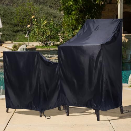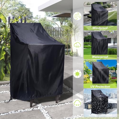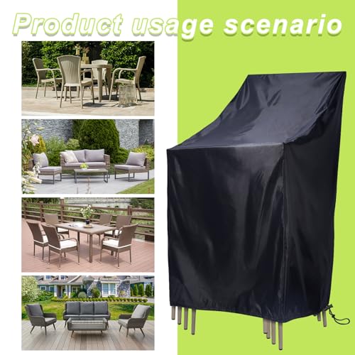 Pektiftn - Stackable Patio Chair Covers, Outdoor Chair Covers Waterproof, Lawn Patio Furniture Covers, Fit for 4-6 Stackable Dining chairs Garden Chairs (Black, 25"L x 25"W x 47”H)