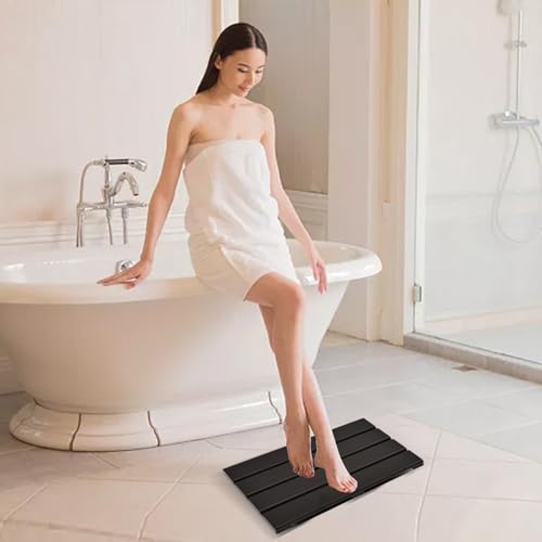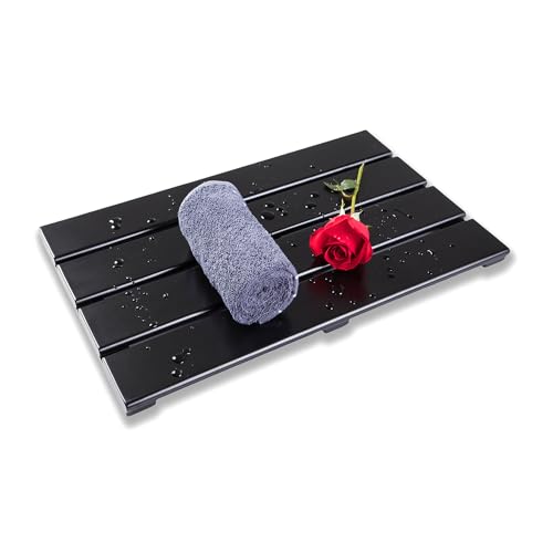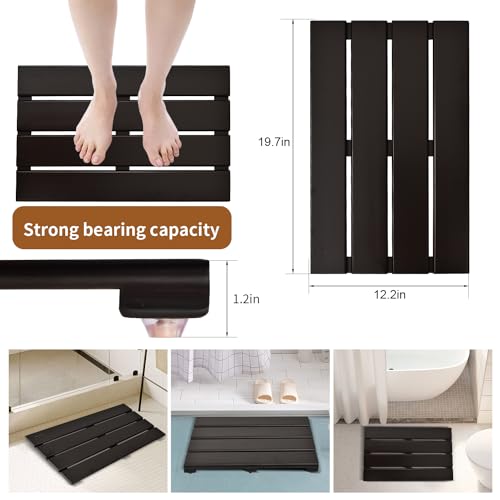 PELYN - Bamboo Shower Bath Mat for Bathroom, Non-Slip Bamboo Wood Bathroom Mats for Inside or Outside (Black, 19.7" Long)