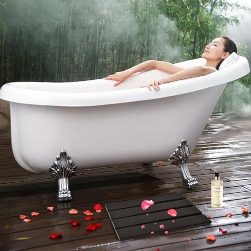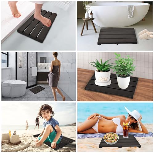 - INDOOR & OUTDOOR USE: Bamboo shower mat is versatile; Use it in your kitchen, bathroom, tub base, pool, back yard, spa, tent, entryway, camping. Also taken as a nice decorative item.