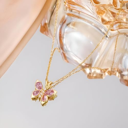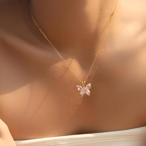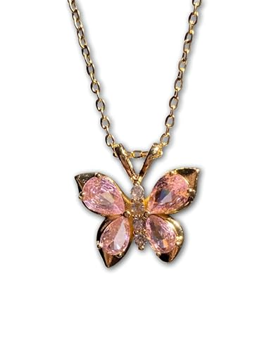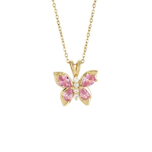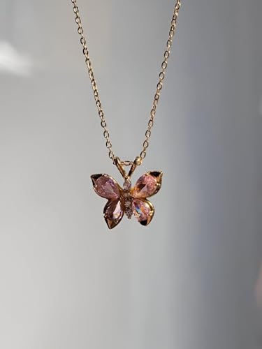 Generic - Pendant Necklace - Gold Butterfly Design Featuring Pink Gemstones and Sparkling Diamonds, Luxury Jewelry with Chain for a Sophisticated Look