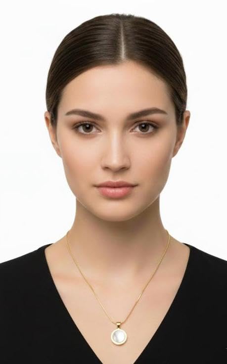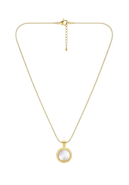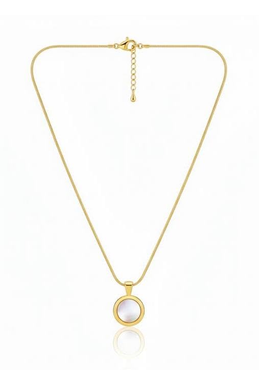 GOGO.EG - Pendant Necklace, Gold Chain with White Pearl Circular Pendant, Elegant Minimalist Style-YF10