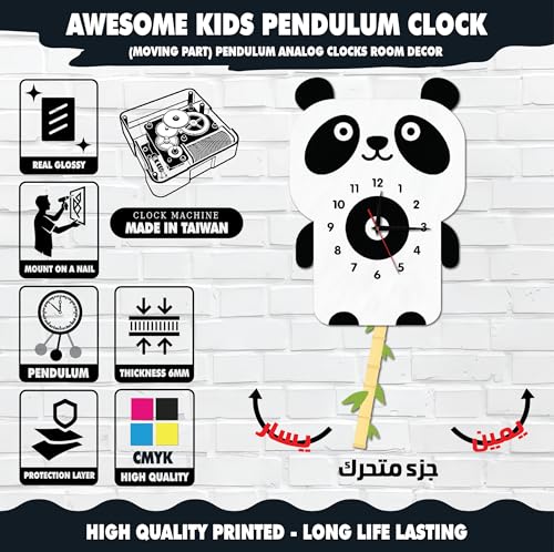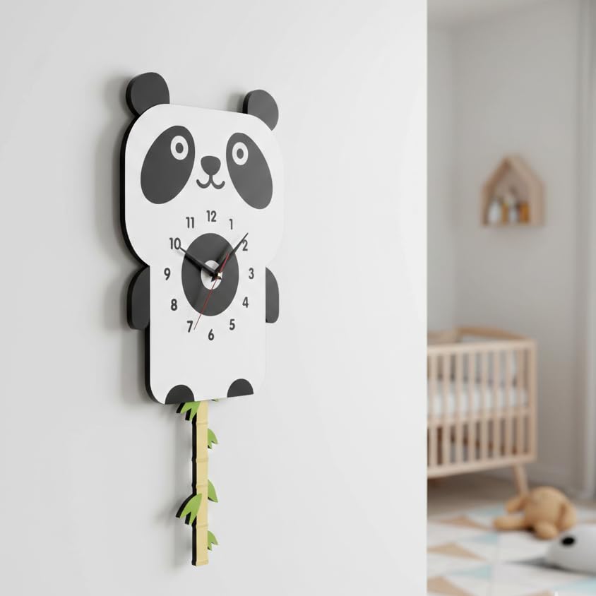 Generic - Pendulum Wall Clock, Pandas with Moving Onion, Vivid Colors and High Quality, Quiet Silent Movement, Easy to Hang, Add Attractive Decorative Touch to All Tastes