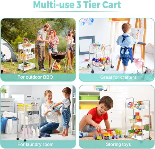 - 【Multifunctional Storage】- This 3 tier rolling storage cart can be used anywhere you want such as office, bathroom, kitchen, art studio, salon, garden, garages, laundry rooms hobby and craft areas and so on. It can be used as a tools cart, organization rack, sofa or bed side end table, nightstand, book cart, bedroom/living room storage cart and so on.