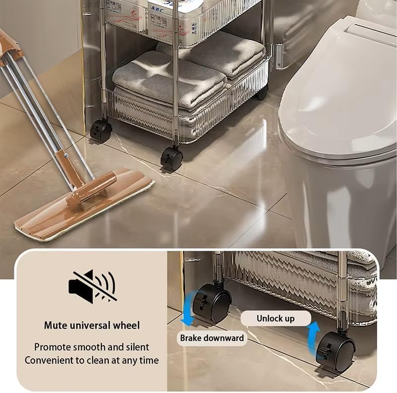 Peng General - 4-Tier Acrylic Storage Rolling Cart Clear Bathroom Cart Organizer with 2 Hanging Baskets, Trolley Organizer with Lockable Wheels for Office Kitchen Laundry Room (Type 4)