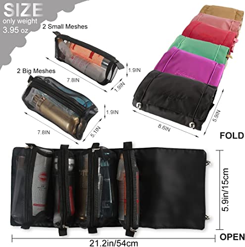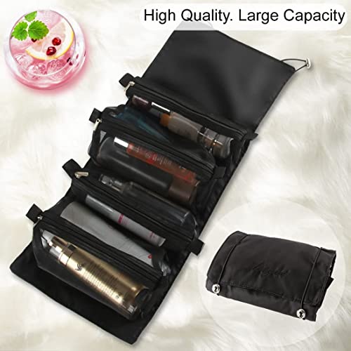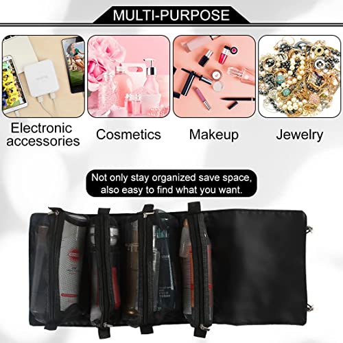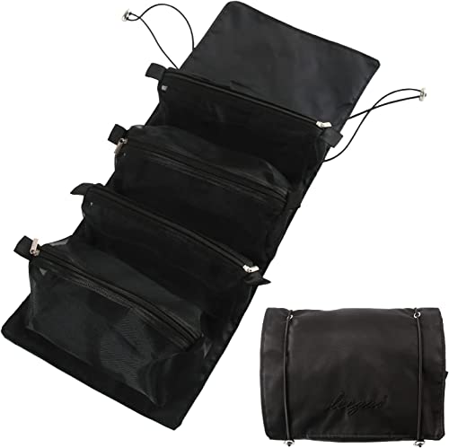 - 【DETACHABLE & INDEPENDENT CARRY】: 4 detachable cosmetic storage bags, two large and two small, to meet different needs, there are Velcro at the bottom, easy to disassemble. Rolling up the cosmetic bag also takes up very little space, so it's stress-free to carry around!