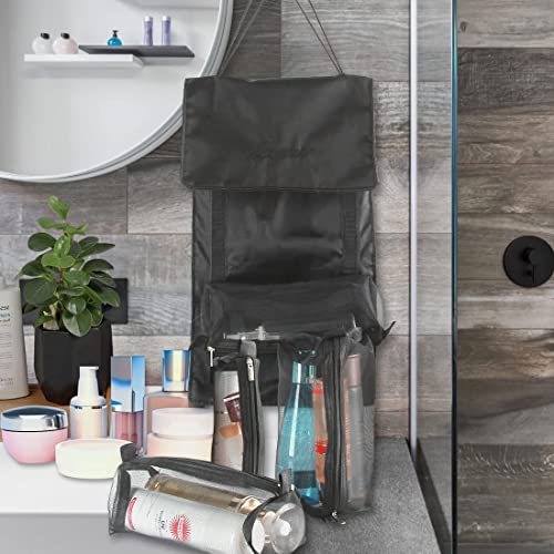 PENGMAI - 4-in-1 Detachable Hanging Travel Toiletry Bag, Large Capacity 4 Sections Makeup Cosmetic Bag Travel Organizer for Women, Black, Toiletry Bag