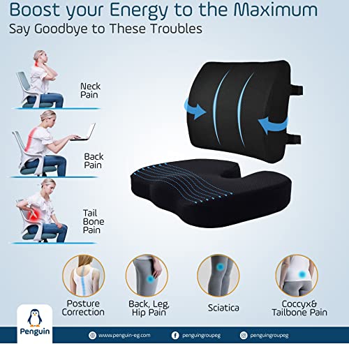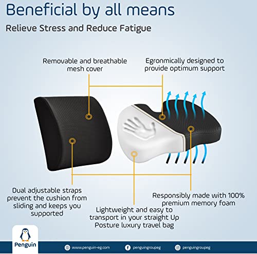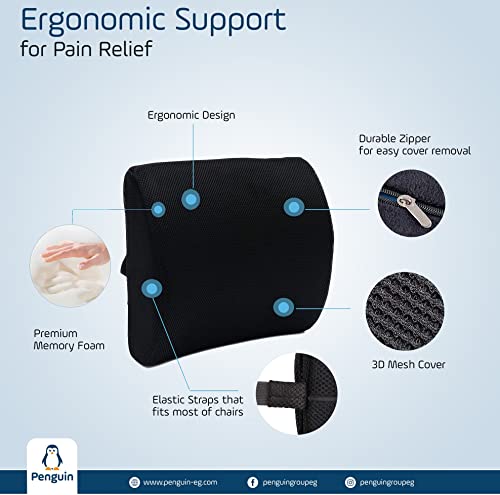 Generic - مخدة لكرسي السيارة من إسفنج رغوة ذاكرة بينجوين أسود