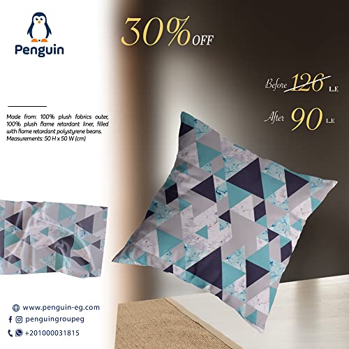 Penguin - وسادة ديكور مطبوعه من بنجوين - 50X50 سم، قماش