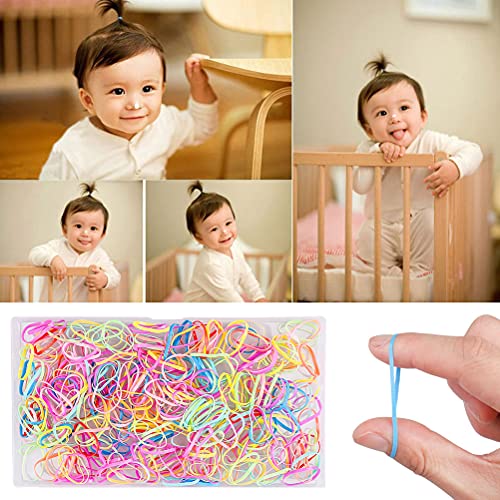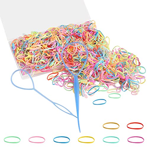 pengxiaomei - pengxiaomei 600 Pcs Large Clear Elastic Hair Ties Non-slip Rubber Hair Bands for Girls with a Box and 2 Pcs Hair Tail Tools for Toddlers Girls Women, Reuseable (Colored)