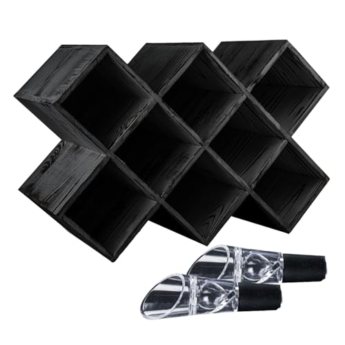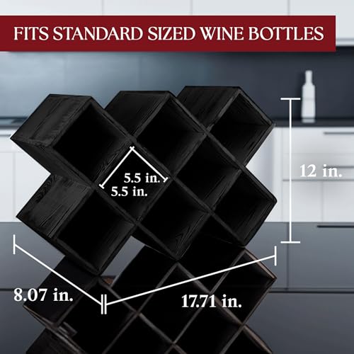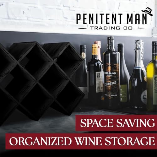 Penitent Man Trading Co - Penitent Man Wooden Wine Rack - Rustic Farmhouse Wine Racks Countertop Storage and Bottle Rack for Wine Storage (Black)