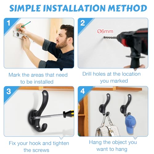 - 【 Easy to Install 】 These black hooks for hanging are easy to hang,just use the hooks for hanging coats installation accessories we provide for you. Depending on the actual installation situation, you can choose to directly use screws or drill holes with screws and expansion plugs to install, which is very simple and convenient.