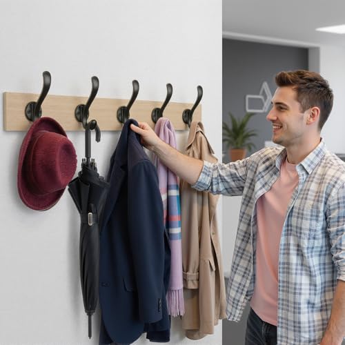 - 【Sturdy and durable】The new generation of coat hooks for wall is made of aluminum alloy, which is waterproof, rust proof, and scratch resistant.It adopts a solid double hook design, and the stress surface has been widened and thickened. It is not only a sturdy and durable wall hooks heavy duty, but also a decorative hook that perfectly combines with modern home styles.