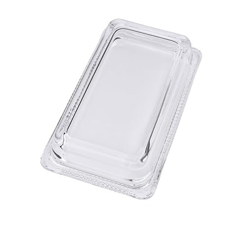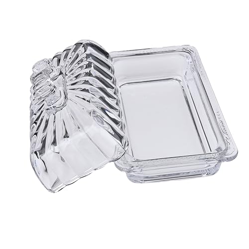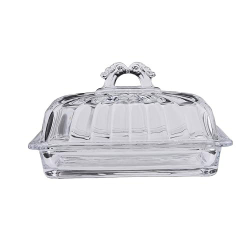 PEPAXON - طبق زبدة زجاجي مع غطاء، صينية تقديم زبدة شفافة، حاوية زبدة بمقبض مقوس من بيباكسون - مقاس 17.5 × 10 × 10.5 سم