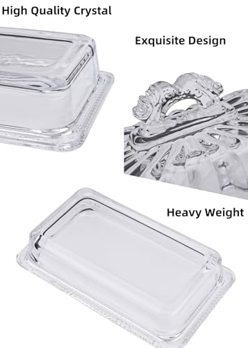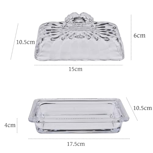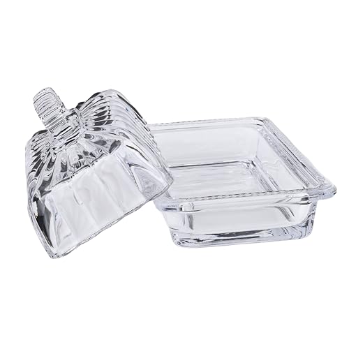 - مظهر رائع: طبق الزبدة مصنوع من زجاج عالي الشفافية، ليس فقط حاوية لتخزين الطعام، ولكنه أيضًا ديكور لتزيين منزلك. يبدو رائعًا على سطح الطاولة أو على طاولة الطعام، لإكمال أي ديكور.