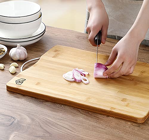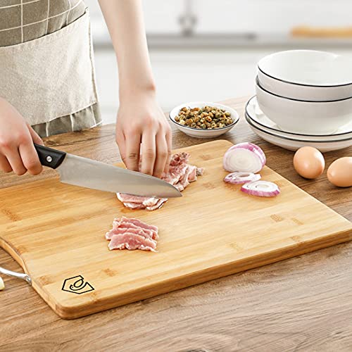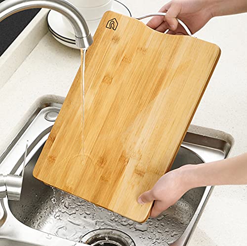 PEPPER BIRD - لوح تقطيع بامبو خشبي بمقبض للمطبخ من بيبر بيرد، شديد التحمل للحوم والخضروات والفواكه والكتل الكبيرة، لوح خشبي آمن للاستخدام في غسالة الأطباق