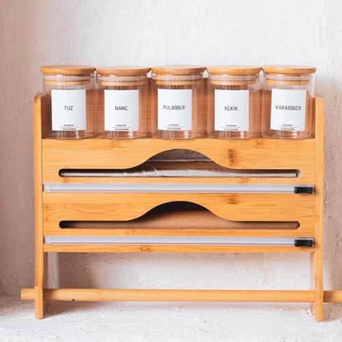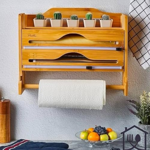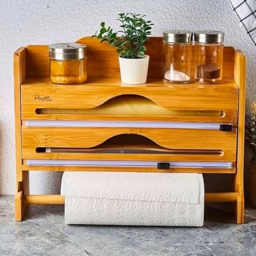 - Multilevel Design: Elegant wooden kitchen rack with three levels for organized storage and a built-in paper tissue holder