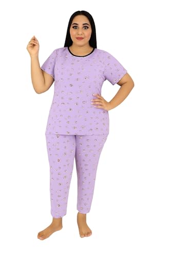 Perfect Fashion - طقم بيجامة مطبوع للنساء من بيرفكت فاشن، بلوزة باكمام قصيرة وسروال طويل، بنمط منقط يناسب وزن حتى 70 كجم، pg13