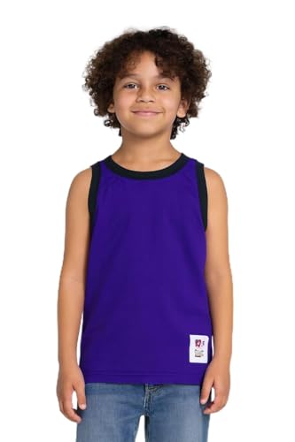 Perfect Fashion - Youth Basketball Jersey, Purple and Yellow, Cotton Blend, V-Neck Sleeveless Athletic Tank Top, Regular Fit, Casual Style