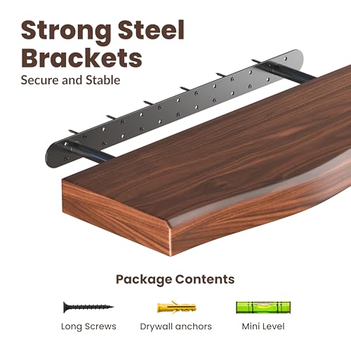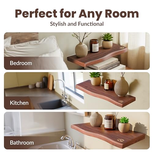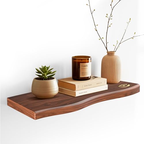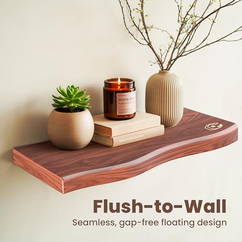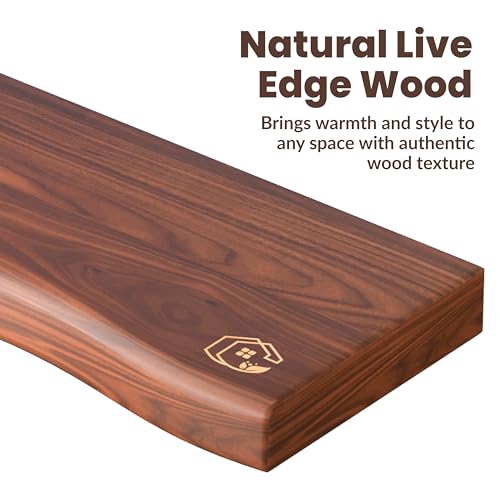 - ✔ UNIQUE LIVE EDGE DESIGN – Every shelf is one-of-a-kind with a wavy edge and rich wood grain patterns, giving your space rustic farmhouse charm or modern organic style.