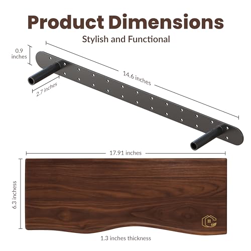 PERFECTION PLACE - Live Edge Floating Wall Shelf – Solid Wood for Farmhouse, Modern, or Rustic Home Decor – with Natural Grain 18"