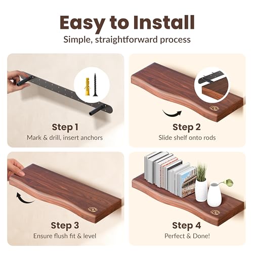 - ✔ HANDCRAFTED SOLID WOOD – Made from premium, durable solid wood, these live edge floating shelves are built to last while adding warmth and natural beauty to any room.