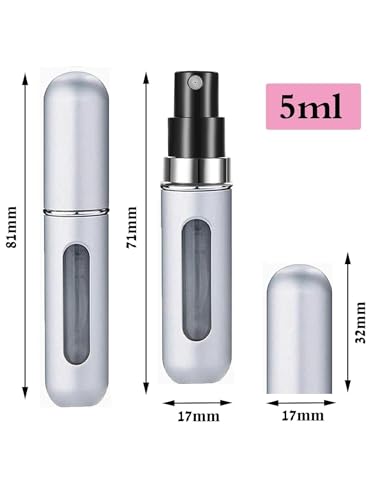 Generic - زجاجة عطر صغيرة متعددة الاستخدامات، قابلة لإعادة الملء، مزودة ببخاخ ومضخة، مناسبة للسفر والاستخدام اليومي (فضي، 5 ملليلتر)